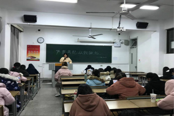 最后,班级同学进行宣誓,承诺在接下来的考试中会严格要求自己,遵守考场纪律,杜绝作弊行为,共同营造文明诚信的考风,创造公平公正的竞争环境。