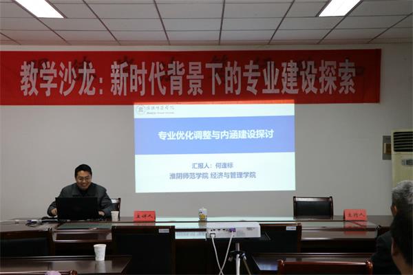 会议开始,经管公司副经理何逢标老师以《新形势下专业内涵建设的思考与探索》为主题从三个个方面说明了专业建设中存在的问题:一是专业人数分布不均衡、二是教师缺失、三是专业内涵建设不足等等。何教授针对这些存在的问题,提出了建设思路,重点以做强做精为标志推动商科专业建设。