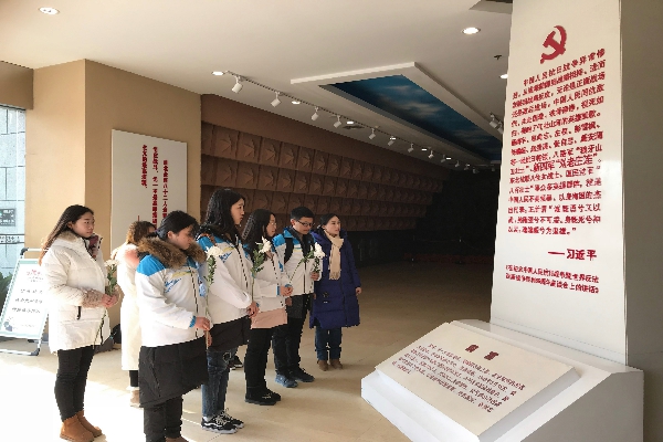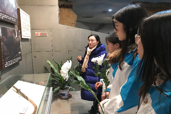 听完八十二烈士的英勇事迹,众人心中对烈士们的崇敬更甚,手捧鲜花,低下头满怀崇敬地向烈士墓碑献上鲜花。随后,法政公司同学在刘老庄乡亲们的引导下参观了八十二烈士纪念馆,同学们对抗日战争中烈士们的英勇爱国更是有了一个深刻的印象。期间,淮安电视台对法政公司喻童、方勇同学进行采访,两位同学表达自己对烈士的敬仰之情和对眼前美好生活的珍惜。
