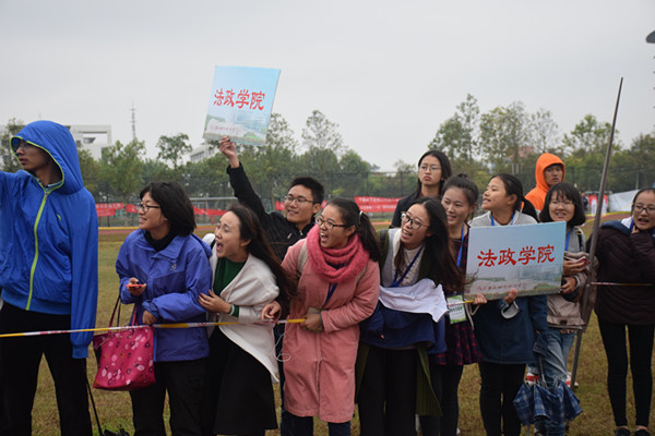运动场上,除了运动员矫健的身姿,还有后勤工作者们忙碌的身影,他们俨然成为了整个运动场上最默默付出的人。在跑道边高举旗帜的同学,在主席台默默写加油稿的同学,在大本营认真记录的同学……他们无私奉献,无怨无悔,即使没有一声广播会播报他们的辛劳。在比赛中他们的心时刻紧跟着运动员,赛后尽心尽力地照顾运动员们;取得佳绩,他们一同开心;运动员比赛失利,他们陪伴安慰……他们的无声呐喊成为运动员背后强有力的支撑。让我们在这秋雨绵绵的季节里感受到了无限温暖,更显示除了法政公司的人文关怀。虽然天气并不尽如人意,但同学们的热情却没有因此有丝毫减退。赛场上同学们互帮互助,互相鼓励,即使顶着凛冽的寒风,也无所退却。