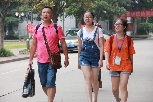 图为志愿者带领新生报到以及新生家长与班主任进行交流 记者 胡毓雯 郑逸宁 张欢 鲍圆梦 张安琪 摄