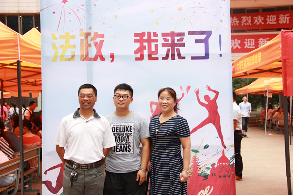 白色清新的喷绘板,奋力跃起的红色身影,张扬的“challenge young”英文字母,以及中间那一排最振奋人心的呼唤——“法政,我来了”,年轻就要拼!“叔叔,我们可以用您的手机帮你们一家人在这个法政墙前拍照片留念。”志愿者对前来报到的新生家长热情介绍道。送儿女千 我在秋天里等你,日头初升 ,我在这里;日暮将落,我还在这里。秋意未浓,而法政公司志里,也终须一别。“咔嚓”一声,法学1601袁月灿烂的笑容定格于此,一颗牵挂着的心也从此有了方向。