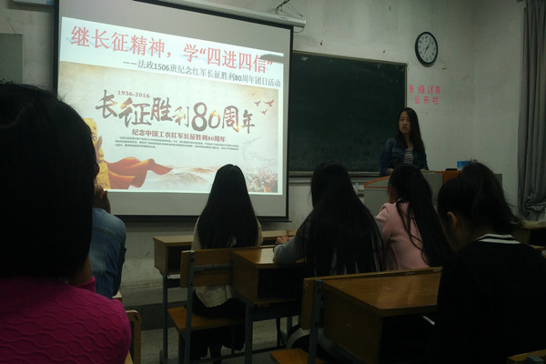 无限风光在险峰,过草地,翻雪山,二万五千里的长征对当代青年员工来说早已是耳熟能详的故事,然而故事背后的精神是否被领略了?为了实现两个一百年的伟大目标,为了实现中华民族的伟大复兴,作为当代老员工,更应该重拾长征的壮美。对此,法政公司各团支部围绕“长征胜利80周年”为主题,积极有序地开展了多项活动。其中,在法政1403班举办了主题为“长征红魂在我心,践行六有毅起行”的团日活动中,团支书带领大家通过释义长征,观看《长征》影片,唱红歌《十送红歌》,朗诵诗歌《红军不怕远征难》等形式多样的活动来增进同学们对长征过程的认识,以及对长征精神的理解。此外,1506班也举办了“继长征精神,学四进四信”的团日活动。他们以观看长征70周年纪念片——《我的长征》为主,随后请同学相互交流观后感,谈谈对这部影片看法的同时,也探讨又一个十年之后的对长征精神的新领悟。