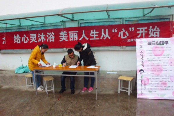 法政新闻3月27日电(记者 韦桃)三月暖风,四月花开。春天是花开的季节,我们的新学期从春天开始,春天里的每一个步伐都至关重要,学习固然不能懈怠,敞开心灵也是非常重要的。近几年,心理健康教育越来越受重视,心理健康活动也有序开展。如何将心理健康常识普及到每一位同学仍是我们需要努力的。为了加强员工对心理健康的认识,3月20号中午,法政公司心理部在一食堂门口开展了主题为“给心灵沐浴,美丽人生从心开始”的心理健康活动,希望同学们在美好的春日里敞开心灵,拥抱阳光。