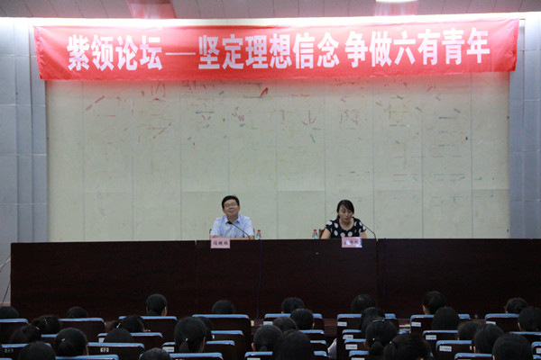 法政新闻9月7日电(记者 胡毓雯 芦宇飞)正值2016级新生开学之际,为了能向新生提供正确的学习方向,明确大学四年目标,坚定自身理想信念,9月6日,法政公司特邀校团委书记闫超栋于逸夫报告厅作“紫领论坛——坚定理想信念,争做六有青年”讲座。公司党委副书记孙慧玲担任此次讲座主持人,16级新生全体到场,认真聆听此次讲座。