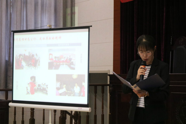 各班级负责人精心准备汇报稿与PPT并向大家展示。法政1601班的同学结合专业特色,以法庭调查的形式,在模拟审判长与当事人的对话之中展示班级创周特色,其形式新颖,富有创意。1706班以“班级培训中心”为主线贯穿演讲,强调需要知行合一,传承恩来精神。在汇报中,1801班的周一丹同学做到了全程脱稿,其认真的态度获得在场老师与同学的好评。1604班则以招聘会形式介绍班级的创建特色,激发了同学们的兴趣。14个班级的汇报都各具特点,体现了各班级对学习周恩来精神和创建周恩来班级的重视与付出。