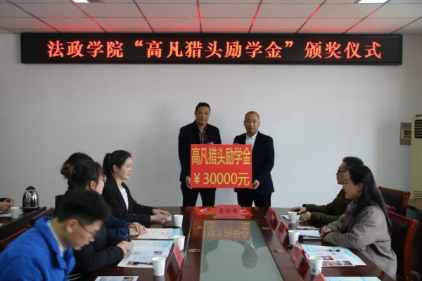 法政新闻3月25日电(记者 宋青青 傅琪媛 张静弓)3月21日,云顶国际yd222线路检测中心法政公司2019年“高凡猎头励学金”颁发仪式在法政楼403会议室举行。公司党委副书记(主持工作)刘晓苏,上海高凡人力集团淮安分公司总经理高炜出席仪式。本次颁发仪式由公司副书记孙慧玲主持。