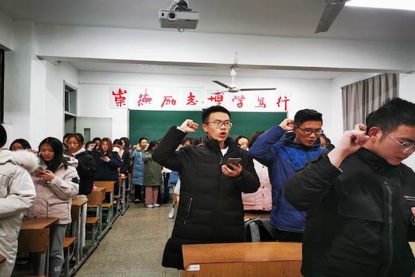 图为法政公司开展“文明考风,诚信考试”主题班会 记者 汪柯含 摄