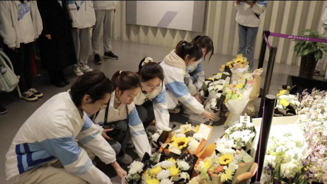 图为法政2103班同学向张纯如献花 记者 徐远航 摄