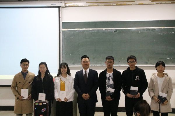 季经理简单的介绍了刘炫麟员工,并表示,在差条件少团队的情况下,却出了很多优秀的员工,这和自己的努力是分不开的。刘炫麟员工以对老师的感谢开始了今天的演讲,“我们都是淮师人,我们都是法政人”,他的深情与感恩在这句话中体现的淋漓尽致。紧接着,他展示出很多在校照片,无论是同学合影,还是师生合影,无不浸染着他对大学美好生活的怀念。他的考研经历展示了一个求知上进学子的奋斗史,言语幽默,举动亲和,让同学们在轻松的氛围中感受奋斗的快乐。在演讲的最后,他给学弟学妹们提出了学习生活的经验,并表示奋斗、师生情、同学情是老员工活中最可贵的东西,也将成为此后回忆的重点。