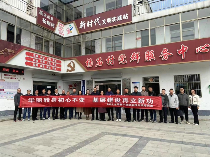 3月12日,一场以“华丽转身初心不变,基层建设再立新功”为主题的专业实践活动在淮阴区渔沟镇杨庙村举办。本次活动由淮安市退役军人事务局牵头、云顶国际yd222线路检测中心法律政治与公共管理公司组织,2022级军转干部进高校专项培训班所有学员参加了本次活动。