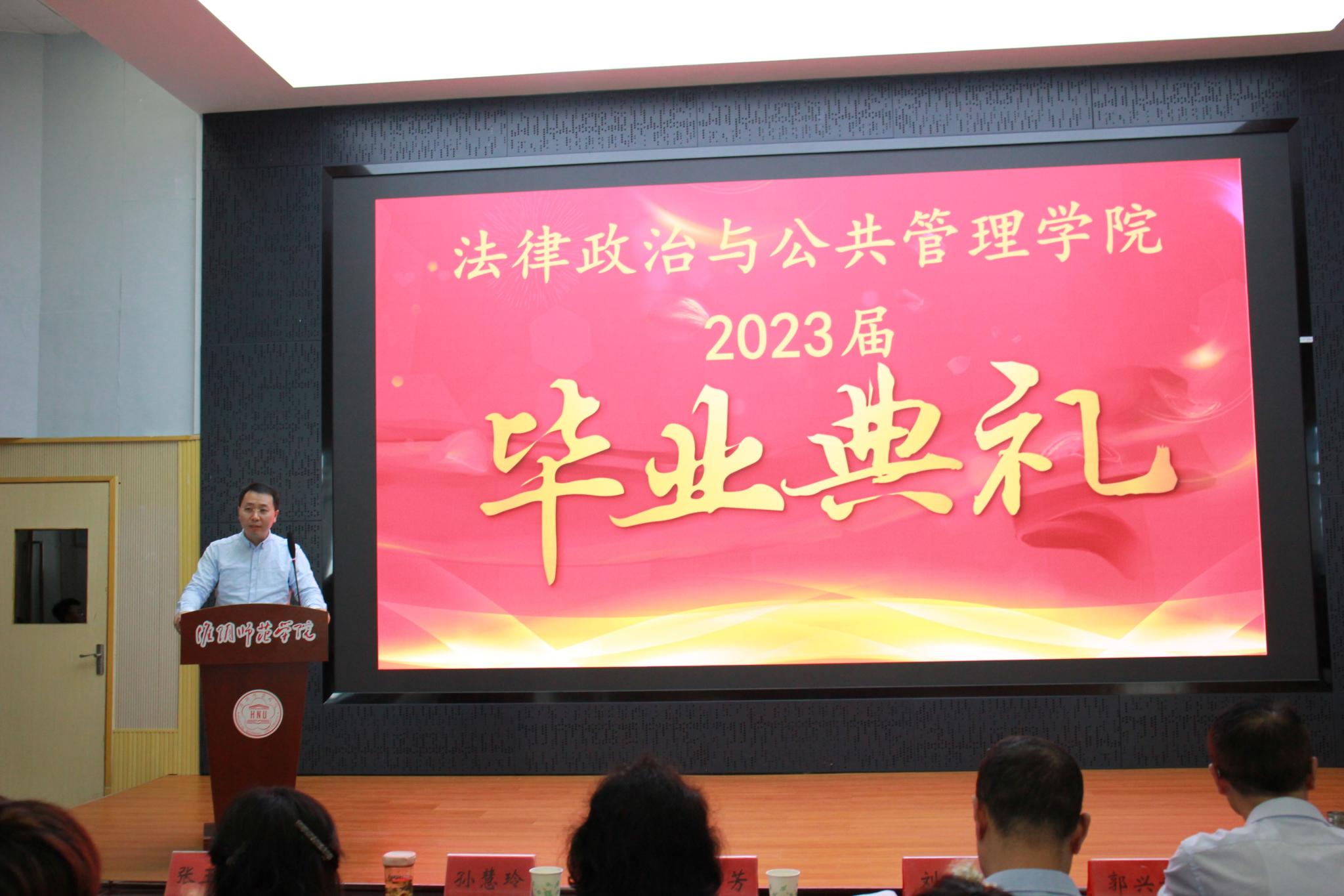 法政公司6月9日电(记者:周林琳 杨静)六月蝉鸣又起,青衿之志可期。6月8日下午,法政公司2023届毕业典礼在逸夫报告厅隆重举行。法政公司党委书记张秀芳、经理刘晓苏、副书记孙慧玲、副经理郭兴利、张玉磊、全体辅导员、毕业班班主任出席毕业典礼。典礼由李延嵩、刘冰艳同学主持。