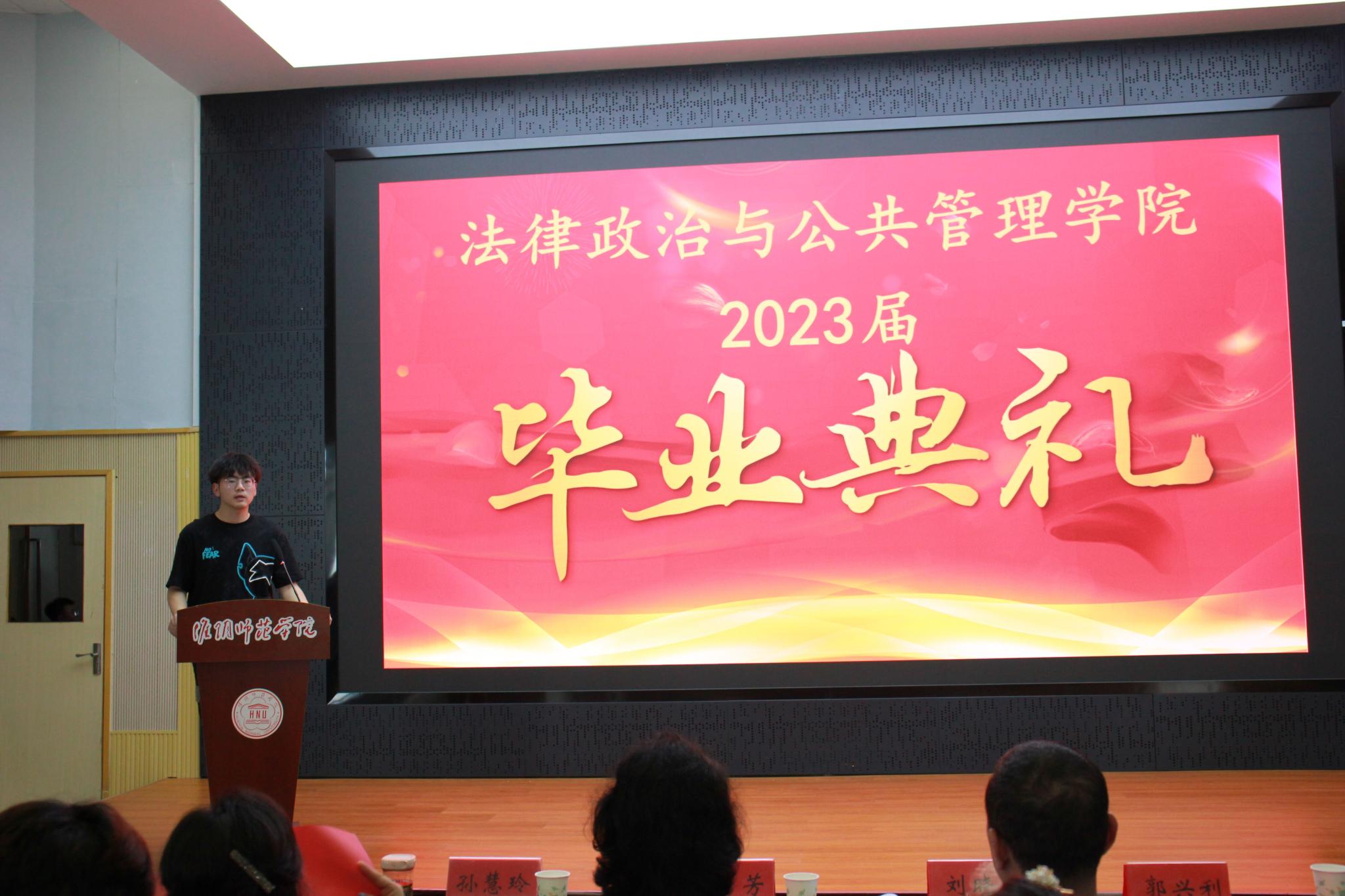 毕业生代表潘伟业、陈瑶代表全体毕业生表达了对公司和老师的感激。他们表示将用法政学子生命中最重要的坚守和最美好的人生态度面对未来,也祝愿同学们不忘来时之路,勇寻似锦前程。