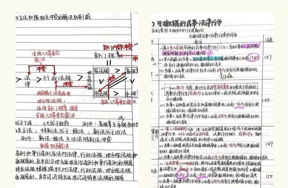 笔记要分块写,每个部分留出空白,后期好添补易错点;笔记要有逻辑,有体系;可以用思维导图、流程图、对比表这些方式整理。
