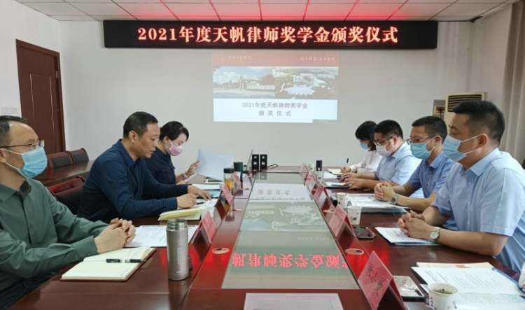 5月30日下午,法政公司在会议室举办“天帆律师奖学金”颁奖仪式。江苏天帆律师事务所主任赵金斗、执行主任、法学专业2009届员工戴号、法政公司经理刘晓苏、副经理郭兴利出席了颁奖仪式。2018级获奖员工线上线下参加了颁奖仪式。颁奖仪式由法政公司党委副书记孙慧玲主持。