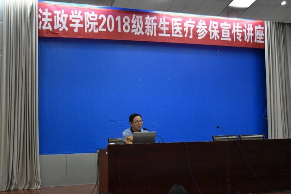 法政新闻9月12日电(记者 傅琪媛 彭俊逸)正值新生入学时期,2018年9月11日下午,法政公司在逸夫报告厅举办2018级新生医疗参保宣传讲座,主讲人是辅导员朱凤祥老师。
