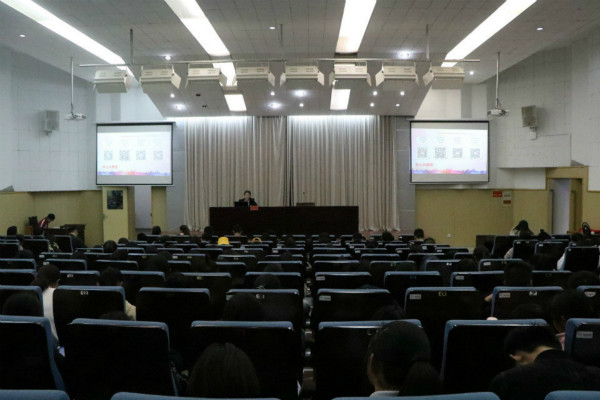 图为院团委书记陈晨为法政2018级新生主讲第一次团课 记者 高洁 高嘉欣 张效瑞 摄