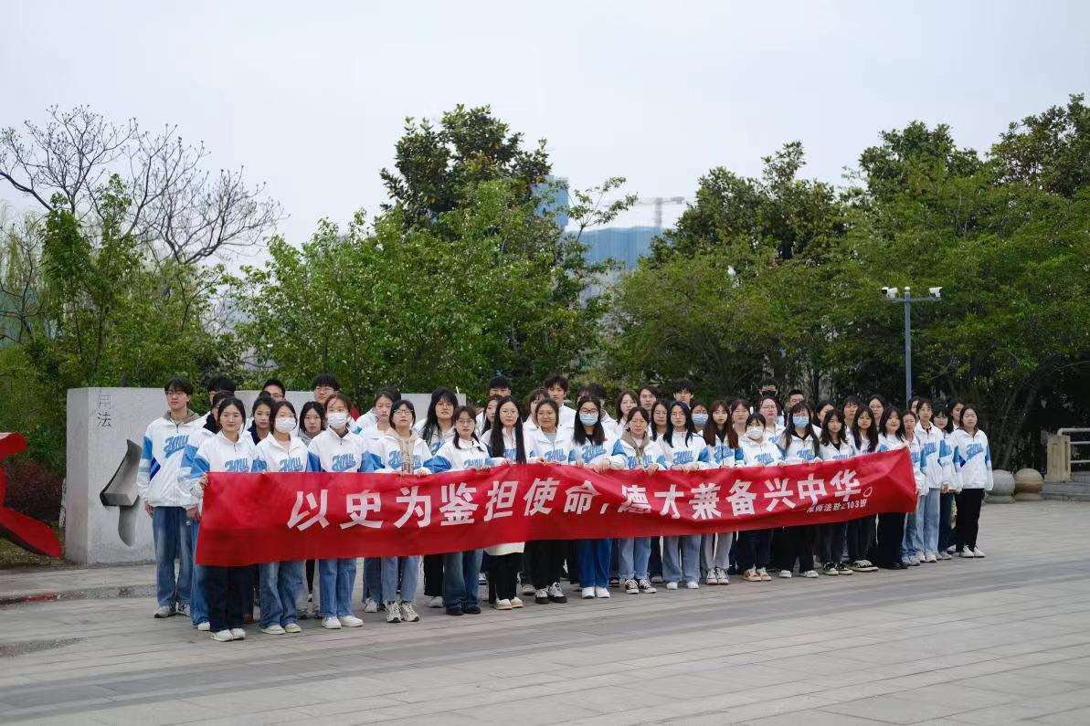 图为 2103 班同学在樱花法治文化广场的合照 记者 徐远航 摄