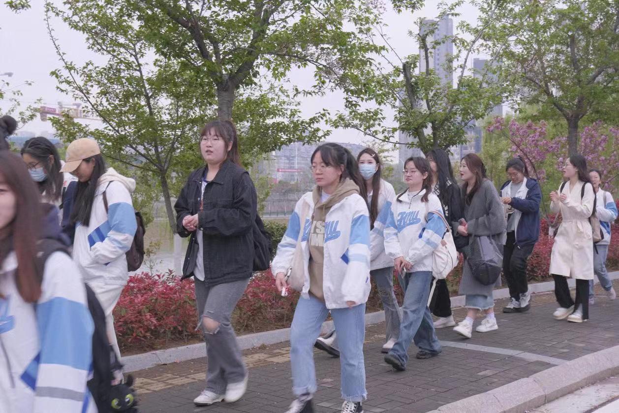 图为法政 2103 班同学走在母爱路上感恩母爱 记者 何希蕾 摄