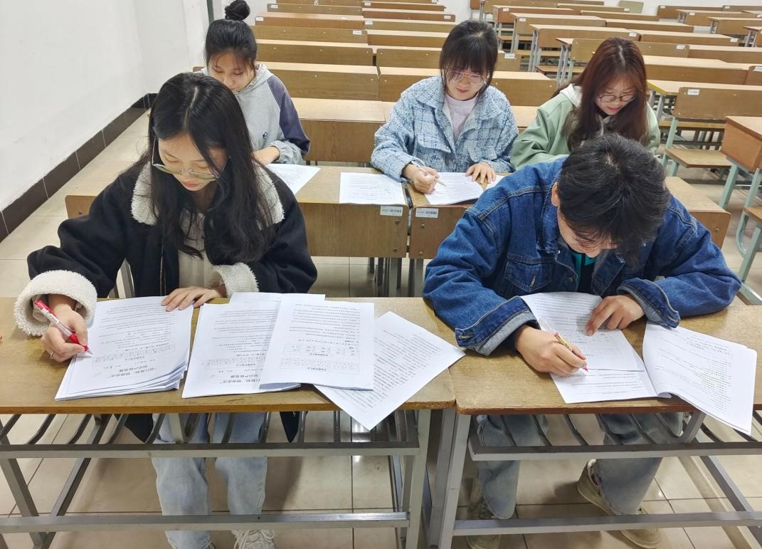 随后,活动负责人将比赛试卷提前分发给参赛同学,待时间一到,参赛人员统一开始答卷。无哗战士衔枚勇,下笔春蚕食叶声。比赛过程中,参赛同学专心答卷,监考人员认真负责,考场氛围安静严肃。完成作答后,同学们依次提交试卷、有序离开考场。