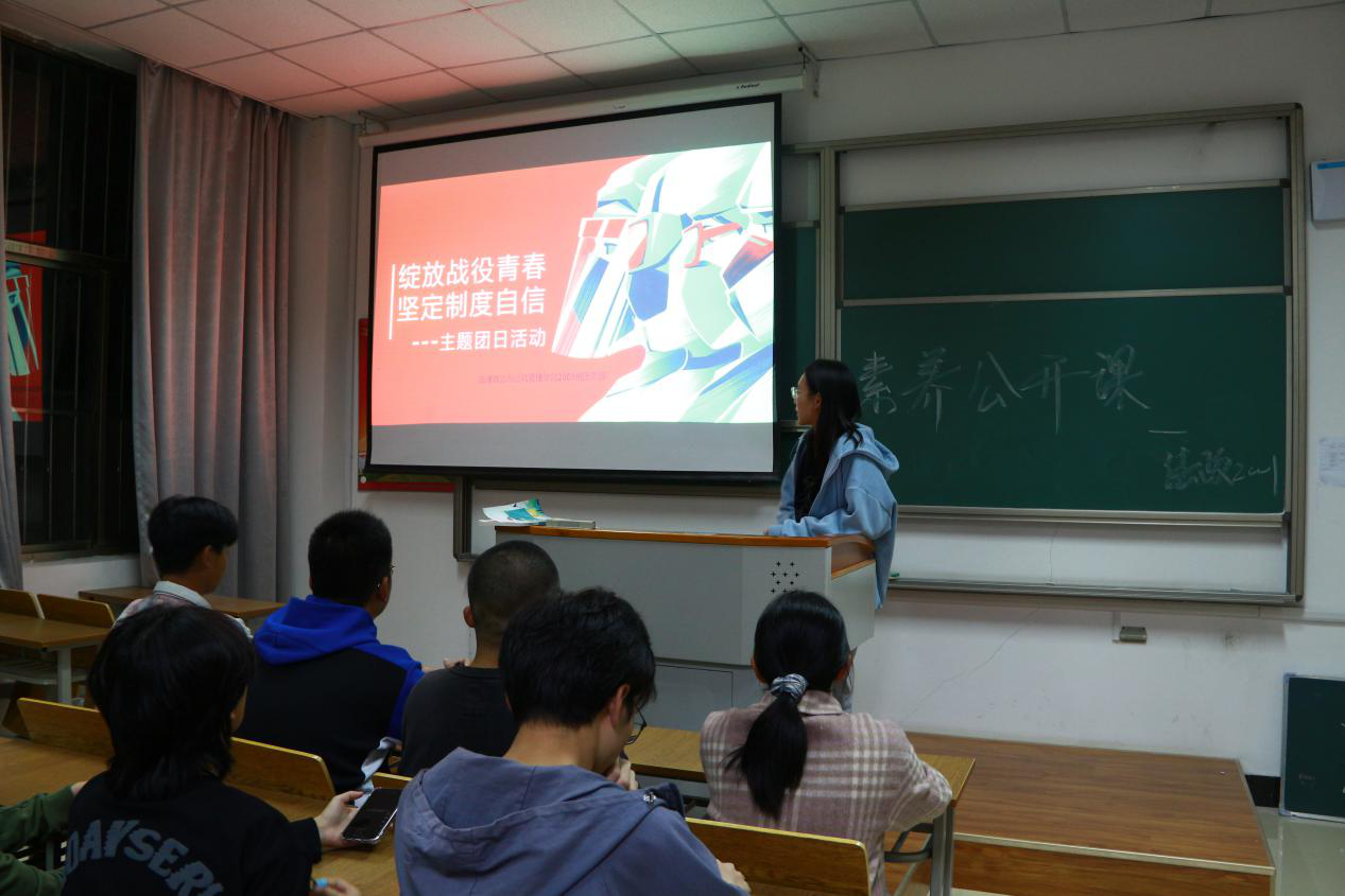法政公司12月11日电(记者 朱薇舒)杨绛先生有言:“人世间得到功勋的人,都有赖于无数默默无闻的人,为他们做出贡献”今年,是不同寻常的一年,做为亲历过疫情的我们,更能够体会其中的不易与艰辛,为了让同学们有更加深刻的体会感受抗议历程,及中国制度的优势,增强民族自信心,法政2001班团支部决定于2020.11.15在综北108教室举行“绽放战役青春,坚定制度自信”的新生第一节团课。