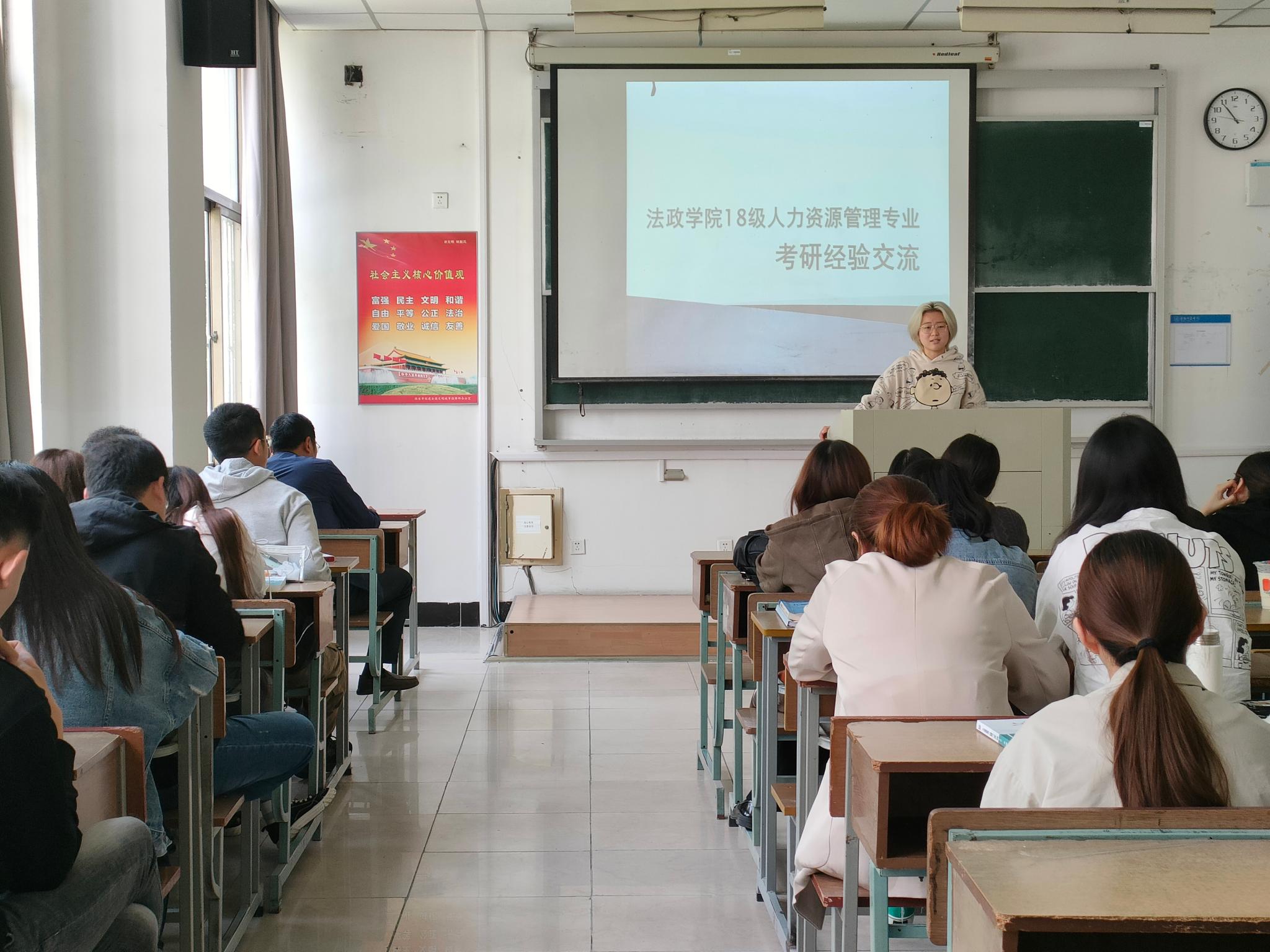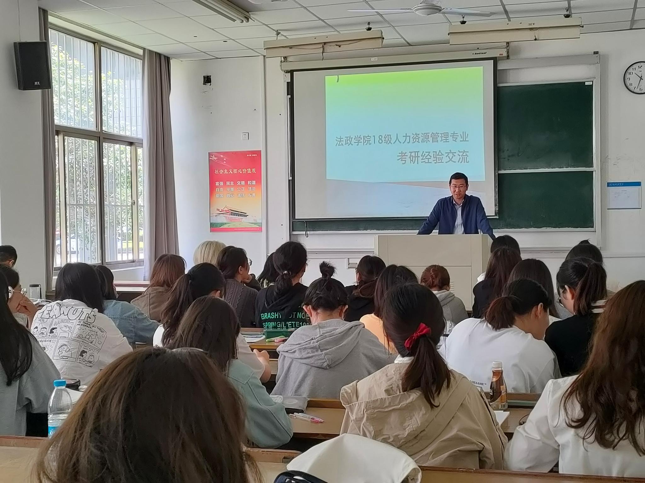 法政公司5月17日电(记者 陆素香)随21届考研复试与调剂的悄然落幕,新一届考研准备的钟声已然敲响,岁岁如此、年年亦然,时光的车轮又前进了一程,蓦然回首,新一届同学们忐忑难安的心情已淹没了昨日的欢愉,备考生们压力渐增。为正确引导考研“小白”们选择考研院校,积极备考,调动积极向上的学习氛围,法律政治与公共管理公司人力资源管理专业王富祥老师、王迎冬老师在2021年5月17日于综南106面向人力资源管理专业1803班、1806班组织了考研交流会。