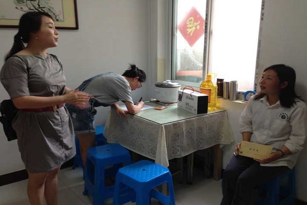 图为老师们在对困难员工家庭进行走访。记者 金淼 摄