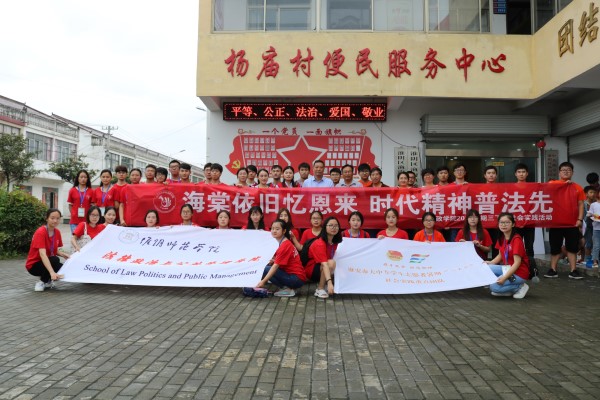 法政新闻7月13日电(记者 方勇 陈天琪 张静弓 彭俊逸)“奉法者强则国强,奉法者弱则国弱”,新时代呼唤法治,人民期盼法治。党的十九大以来,习近平总书记对全面依法治国作出了一系列新的战略部署,大力弘扬社会主义法治精神,不断增强人民群众宪法意识。在全社会深入开展法治精神宣讲,让法治走进百姓心田,已成为我们当代老员工责无旁贷的青春使命。今年是改革开放40周年,同时也是乡村振兴战略深入推进年,为更好地让广大人民群众学法、知法、守法、用法,让法治精神助力新时代乡村改革与发展,2018年7月6日上午,云顶国际yd222线路检测中心法律政治与公共管理公司“明德崇法”暑期社会实践团队前往淮安市渔沟镇杨庙村开展了为期两天的以“法治精神宣讲,助力乡村振兴”为主题的实践活动。