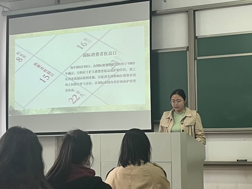法政公司新闻3月30日电(记者:王子)为了引导同学们深入了解315消费者权益日,倡导同学们文明、健康、理性消费,增强自我维权意识,掌握科学维权方法,提高依法维权能力。2023年3月15日法缘社在综北104举办了“文明消费,理性维权”活动,由法缘社团支书孟丽同学主持本次活动。