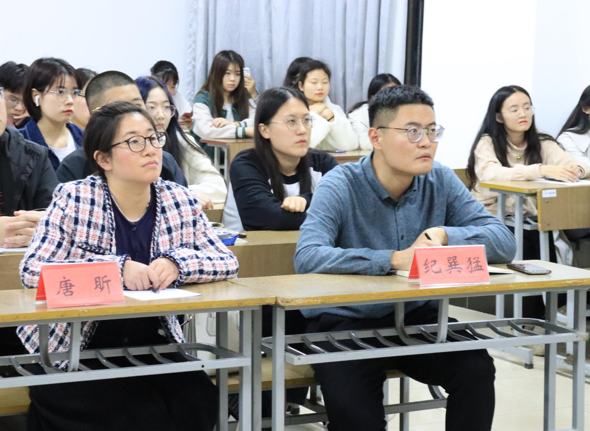 活动中,举办了共青团知识问答竞赛,由张璐璐同学和李辉同学负责,分为男、女两组,每组各四人。参赛人员从容淡定,应答如流。场外的同学也积极参与讨论,场面激动有趣。