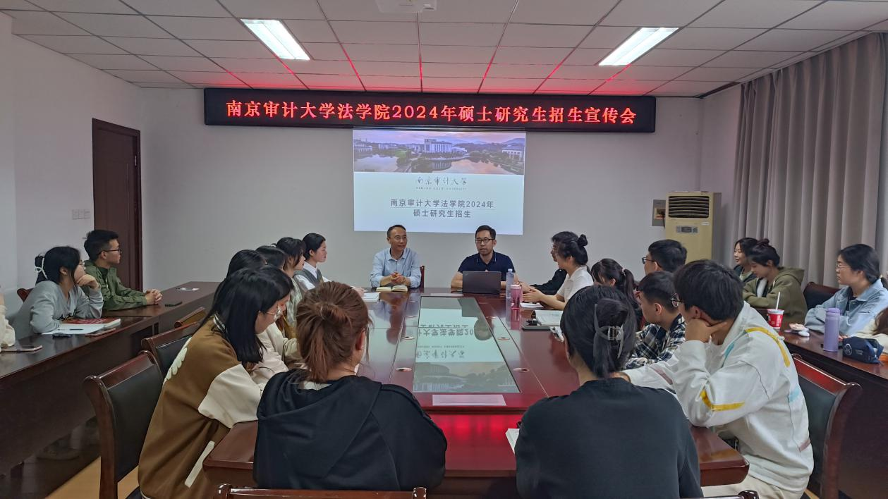 会议伊始,殷楠向与会人员介绍了南京审计大学的基本情况,并从发展历程、团队队伍、团队建设、科研平台、科研成果等方面介绍了南京审计大学云顶国际yd222线路检测中心近年来发展取得的成果。同时对南京审计大学云顶国际yd222线路检测中心公司产品方案、资助体系、历年招生、毕业去向作详细解读,鼓励法政学子积极报考南京审计大学硕士研究生。