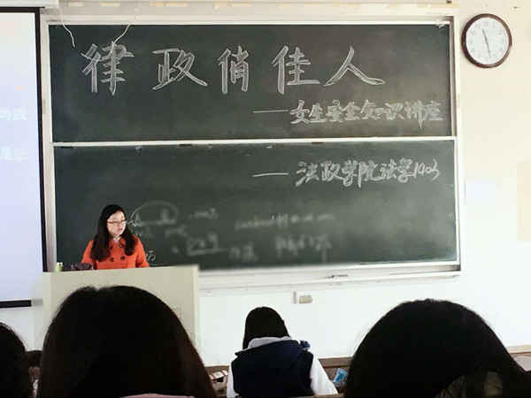 当代青年女老员工有些独特的青春气质与活力四射的激情,在每一位女生都懂得尽情享受美好年华时,更应加强安全防范意识来保护自己,在最美的时光里绽放最绚丽的光彩。针对女生安全防范等知识,法政公司法学1403、1402班于分别举办了关于女生安全教育讲座——“律政俏佳人”和“美丽女神,心灵启程”活动。