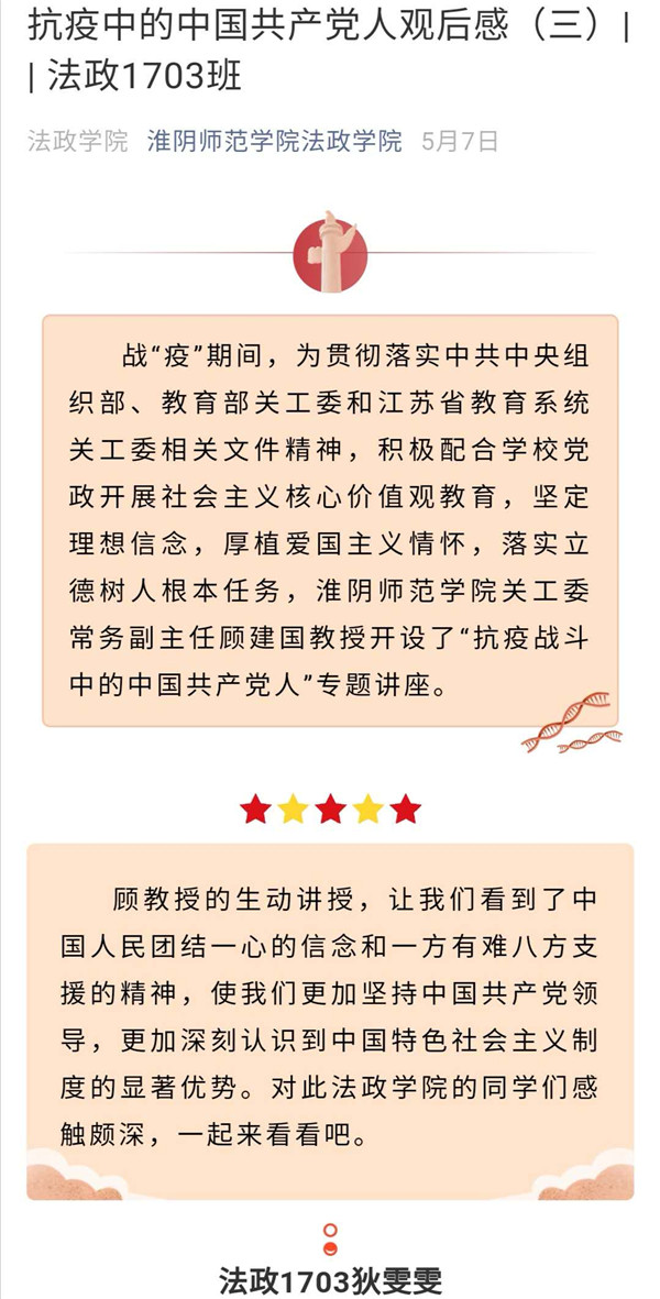 【主题教育月】抗疫中的中国共产党人观后感(三)| | 法政1703班