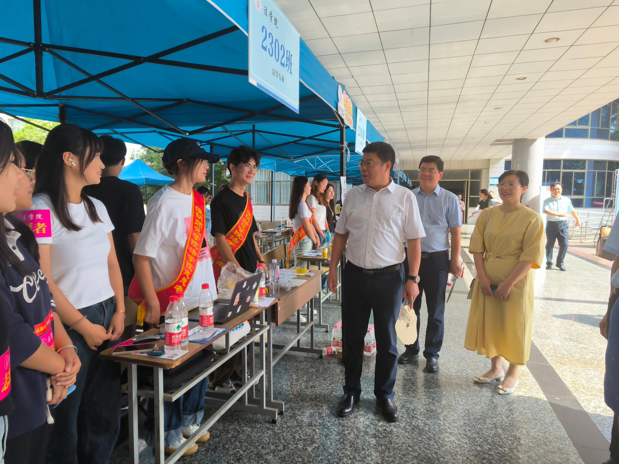 此外,公司还为新生和家长提供茶水及休息场所,小推车在校门与宿舍点穿梭,数十顶颜色鲜亮的蓝色帐篷下是公司接待点老师们忙碌的身影,学长、学姐和老师在校园各处守候新生进校,班助为新生发放校园卡、耐心现场答疑,第一时间解决员工的诉求。