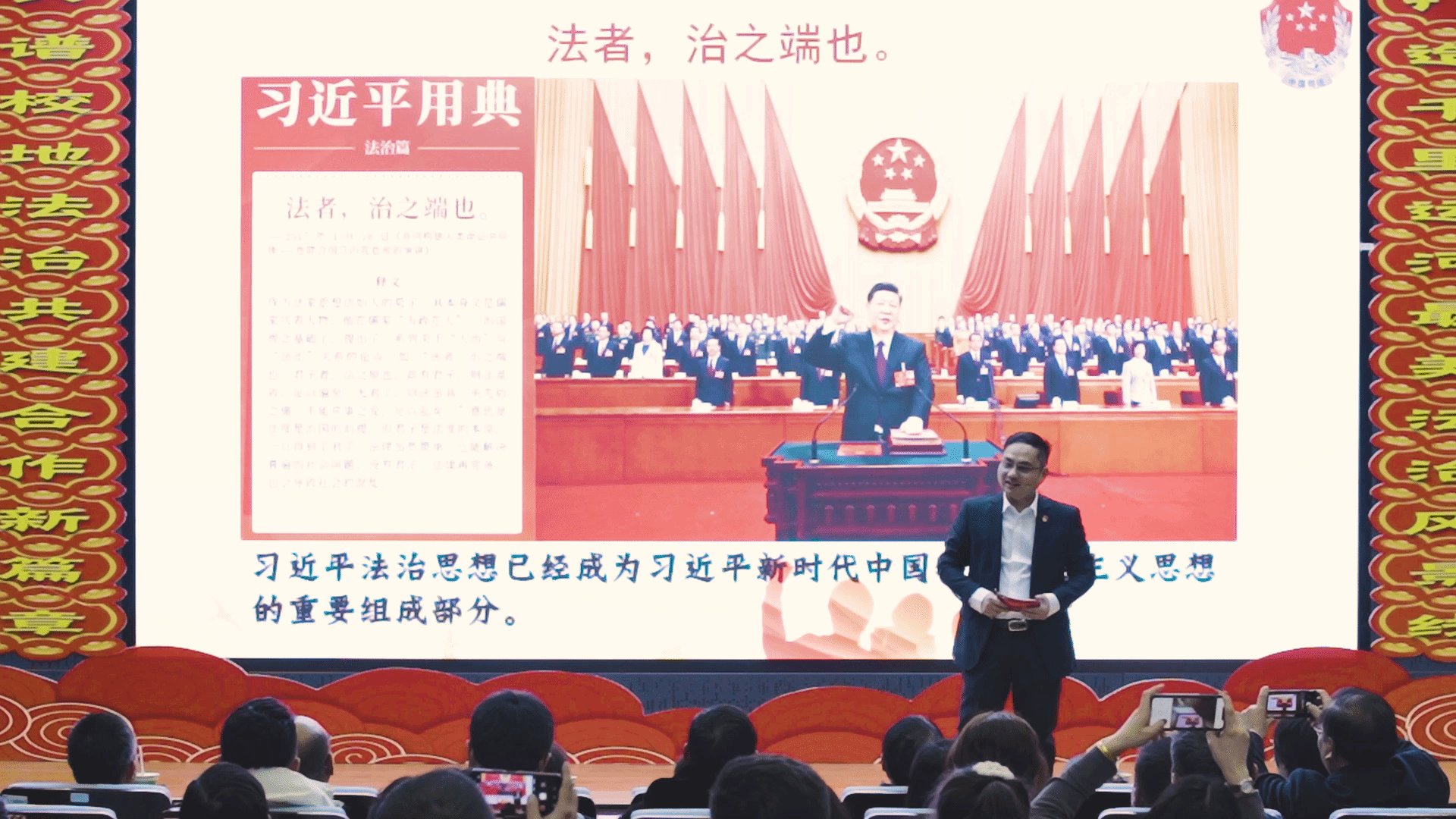 清江浦区司法局、云顶国际yd222线路检测中心、清江浦区新联会等单位200余名法治人现场观演。