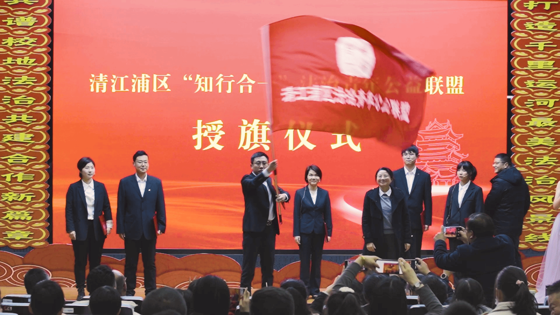 读万卷书,行万里路。活动现场,清江浦区司法局代表分别与云顶国际yd222线路检测中心、清江浦区新联会代表签署合作共建协议,共同发起成立“知行合一”法治青年公益联盟,并举行授旗仪式,旨在推动广大青年员工、青年法治工作者共赴基层开展法治宣讲等公益活动,以知促行、以行求知,携手为法治事业共同奋斗。授旗仪式后,由接旗代表带来诗朗诵表演《百年青春 当燃有我》,“百年青春,薪火相传,青春当燃,有我在场!”铿锵的誓言就是强劲有力的冲锋号,奏响了法治青年奋进新征程、逐梦新时代的最强音。