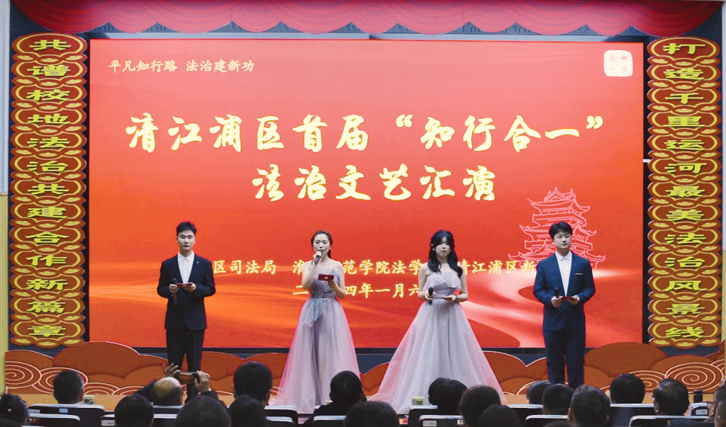 日月开新元,万象起新篇。2024年新年伊始,为大力弘扬法治精神,深化校地合作,进一步传递清江浦法治好声音,讲述法治好故事,1月6日下午,清江浦区首届知行合一法治文艺汇演在云顶国际yd222线路检测中心交通路校区举行。
