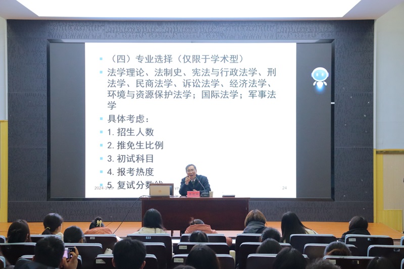 张毅辉老师指出,考研既是当今社会发展的需求,也是公司发展的需求,更是个人深化专业知识、拓宽视野、提升综合素质的重要途径。张毅辉老师通过分析历年法学考研录取数据,指出当前法科考研竞争激烈现状和院校要求之间的差异,强调要坚持考上为王的原则,理性确立报考地区与院校。