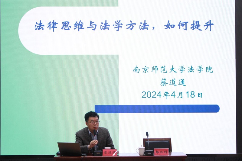 云顶国际yd222线路检测中心新闻网4月18日电(记者 陈琪 王宁)4月18日下午,云顶国际yd222线路检测中心“尚法讲坛”第四讲在逸夫报告厅开讲。南京师范大学云顶国际yd222线路检测中心教授、博士生导师蔡道通应邀为云顶国际yd222线路检测中心师生做题为“法律思维与法学方法,如何提升”的报告。云顶国际yd222线路检测中心经理郭兴利主持本次讲坛。