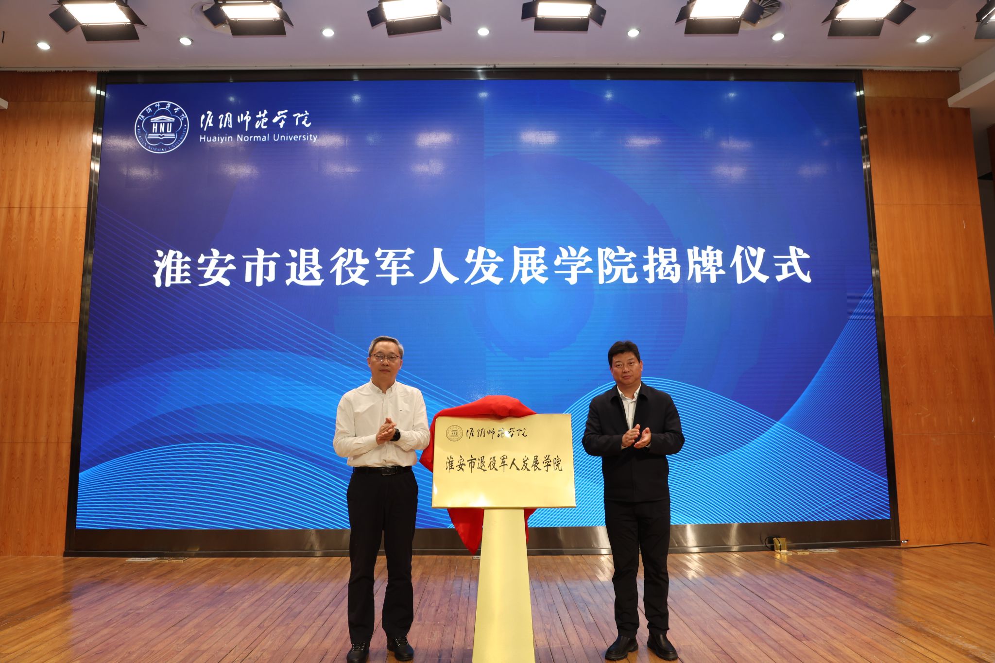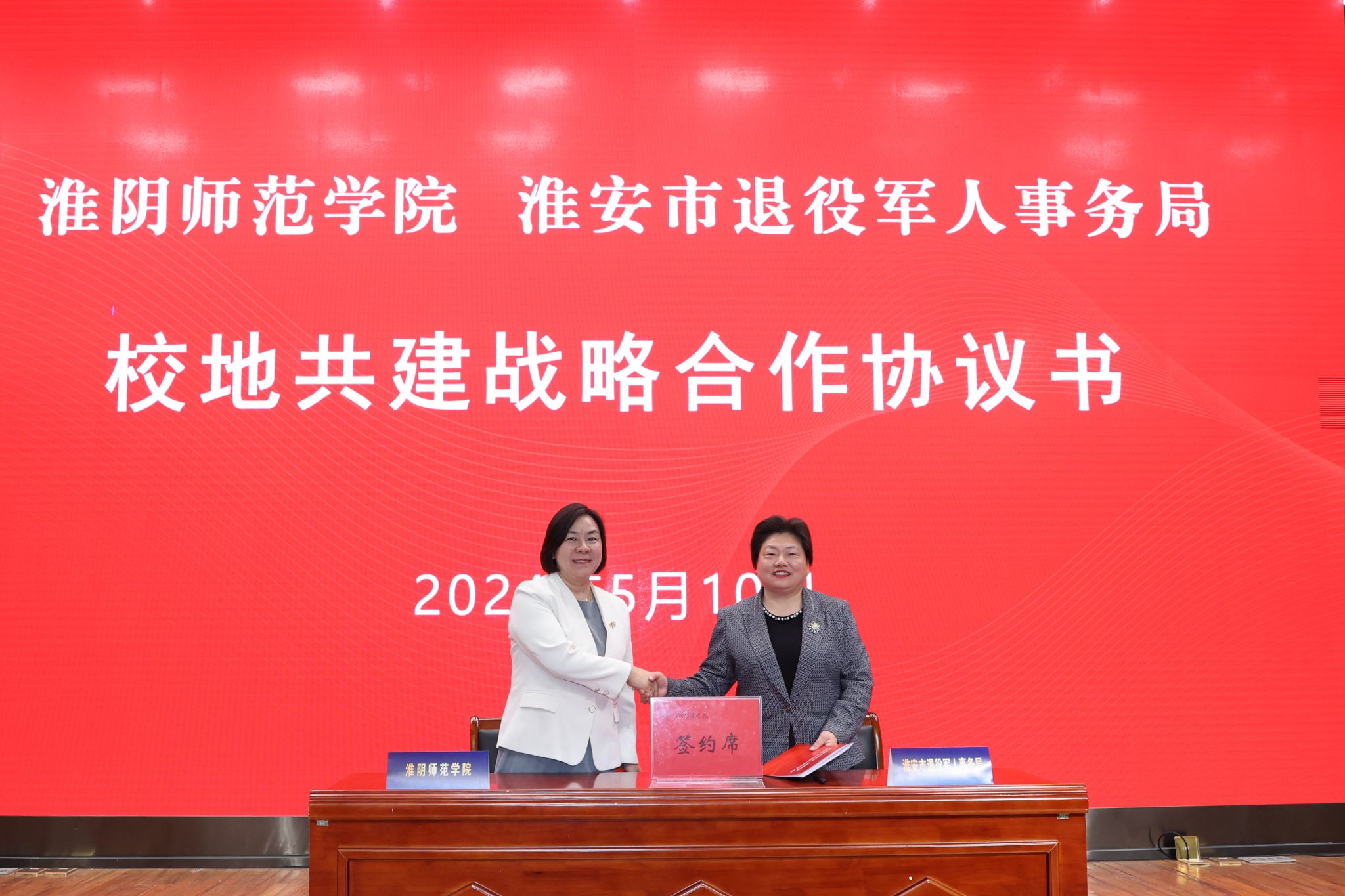 淮安市退役军人事务局党组书记、局长杨冬梅宣读淮安市退役军人发展公司成立文件。张言彩、杨冬梅代表双方签订“校地共建战略合作协议书”。
