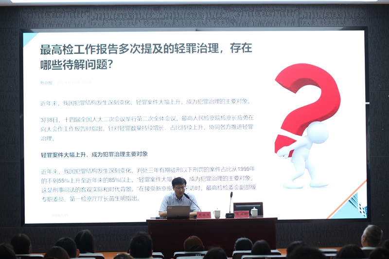 报告伊始,周振杰教授分析了刑法修订所呈现出的特点,分享了他对轻罪治理、企业合规和缓刑制度的认识,着重分析了扩大缓刑的适用、轻罪治理等方面对个人和社会的影响。轻罪时代的来临,也需要轻罪治理的方略。通过以不起诉为主导、大量适用缓期执行和教育、预防为刑事诉讼目标等理念的建立和完善,以符合轻罪时代的期待和要求。