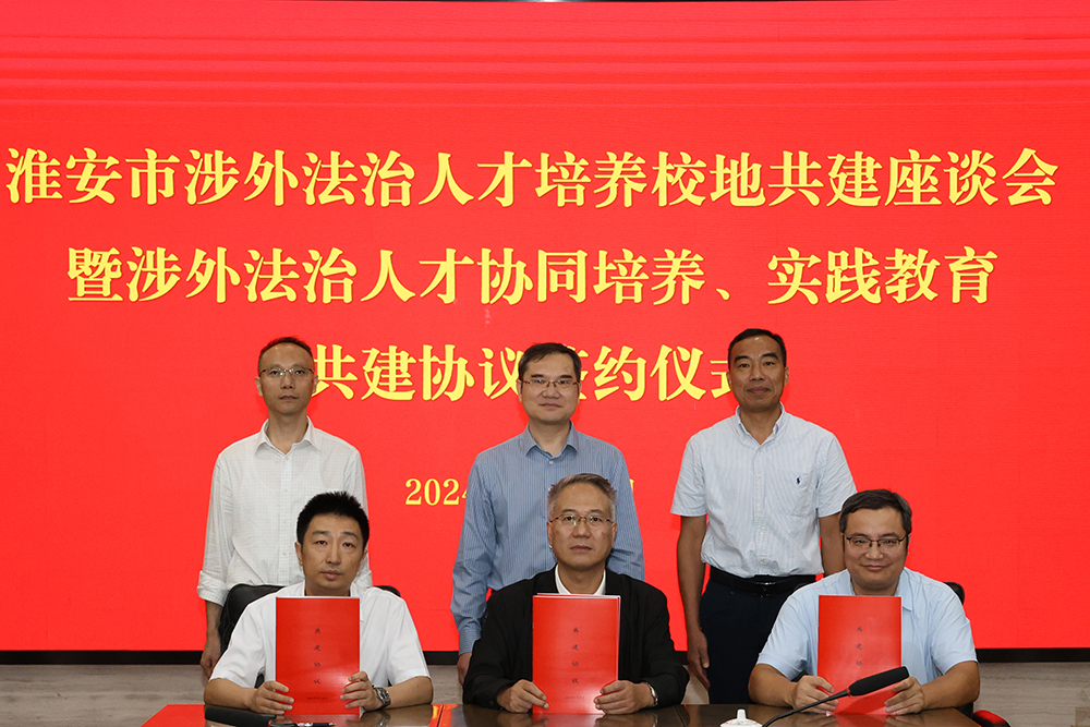 9月25日下午,淮安市涉外法治人才培养校地共建座谈会暨涉外法治人才协同培养、实践教育共建协议签约仪式在长江路校区图书馆第一会议室举行。云顶国际yd222线路检测中心董事长赵宜江、副董事长毛广雄,淮安市司法局局长李尚武,市委全面依法治市委员会办公室副主任胡海洋,市律协副会长、秘书长、北京盈科(淮安)律师事务所副主任朱剑出席签约仪式。