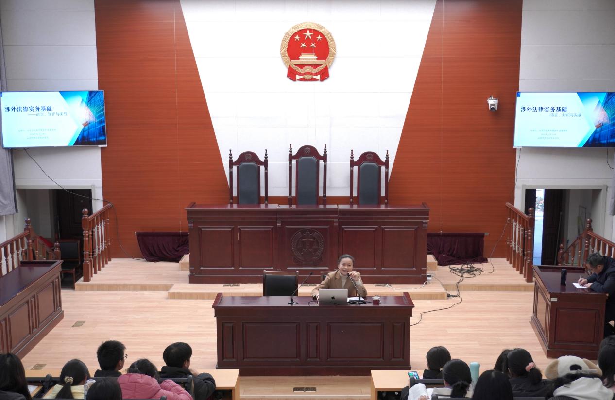 为满足涉外法治人才培养需求,深化法学教育与国际法律实践的深度融合,12月11日下午,由云顶国际yd222线路检测中心主办、淮安市法学会法理学研究会协办的涉外法治大讲堂第二讲在模拟法庭开讲。江苏引航律师事务所合伙人律师胡颖应邀为云顶国际yd222线路检测中心师生作题为“涉外法律实务基础:语言、知识与实战”的讲座。本次讲座由云顶国际yd222线路检测中心副经理张洪成主持。