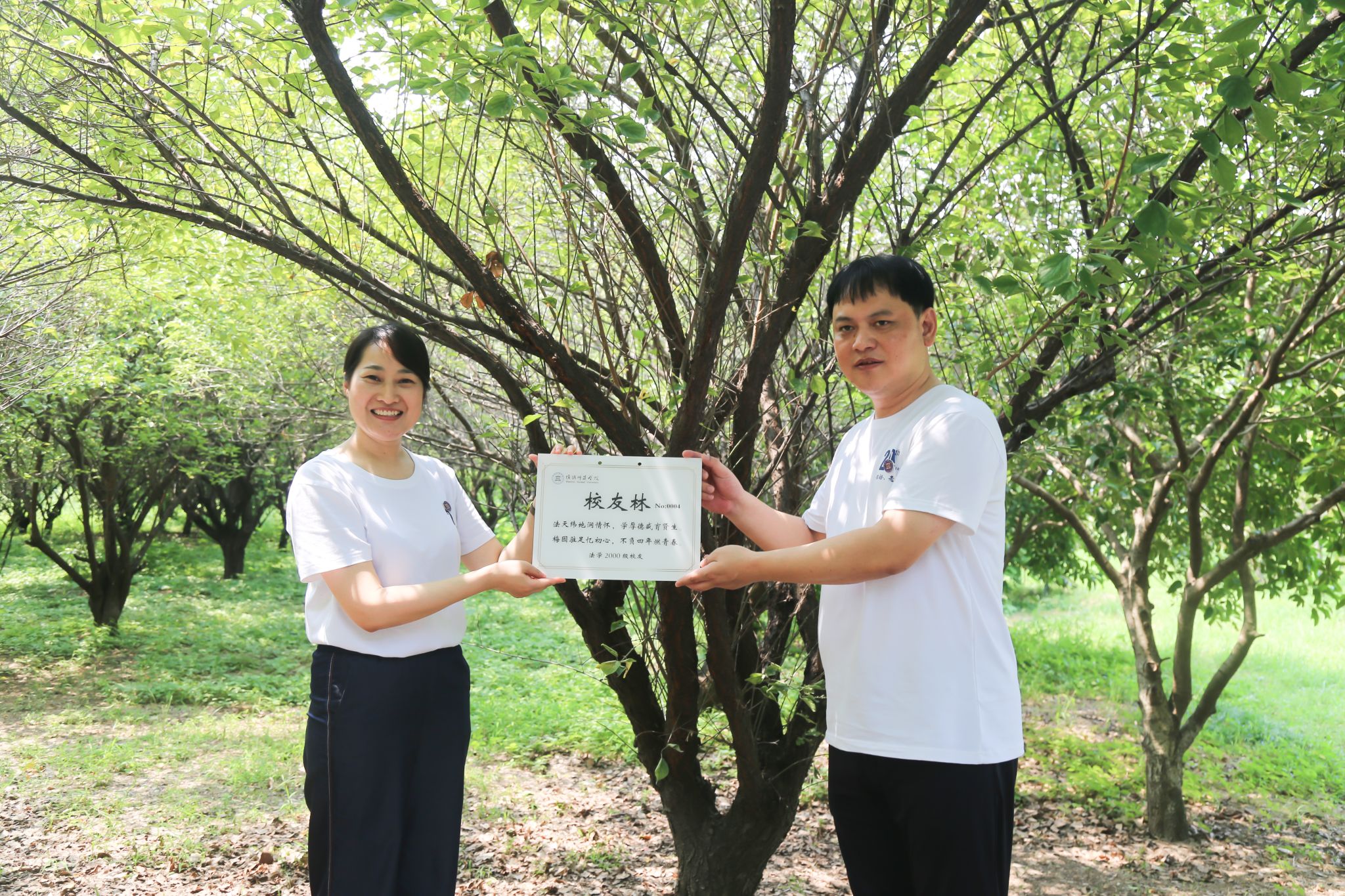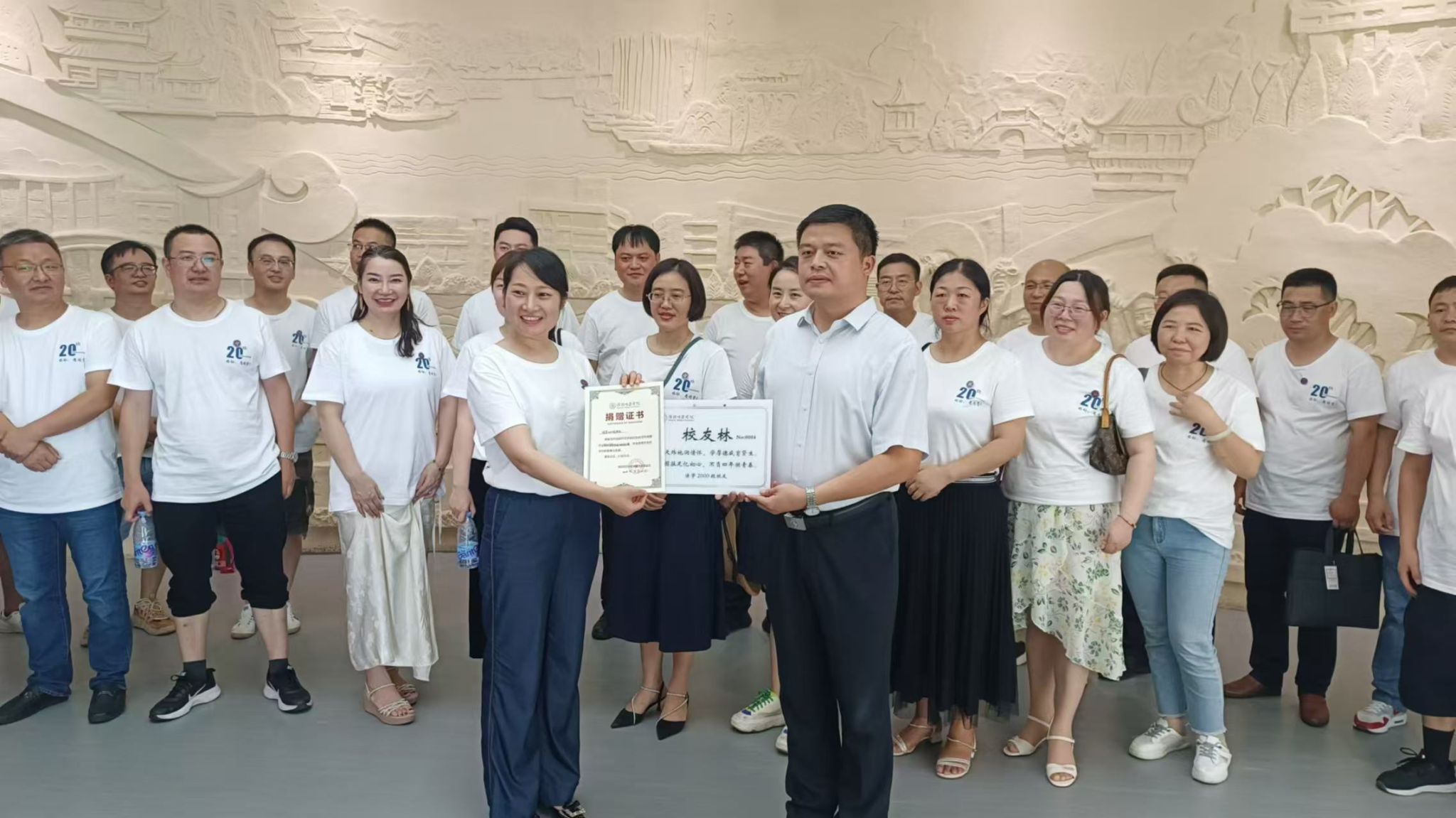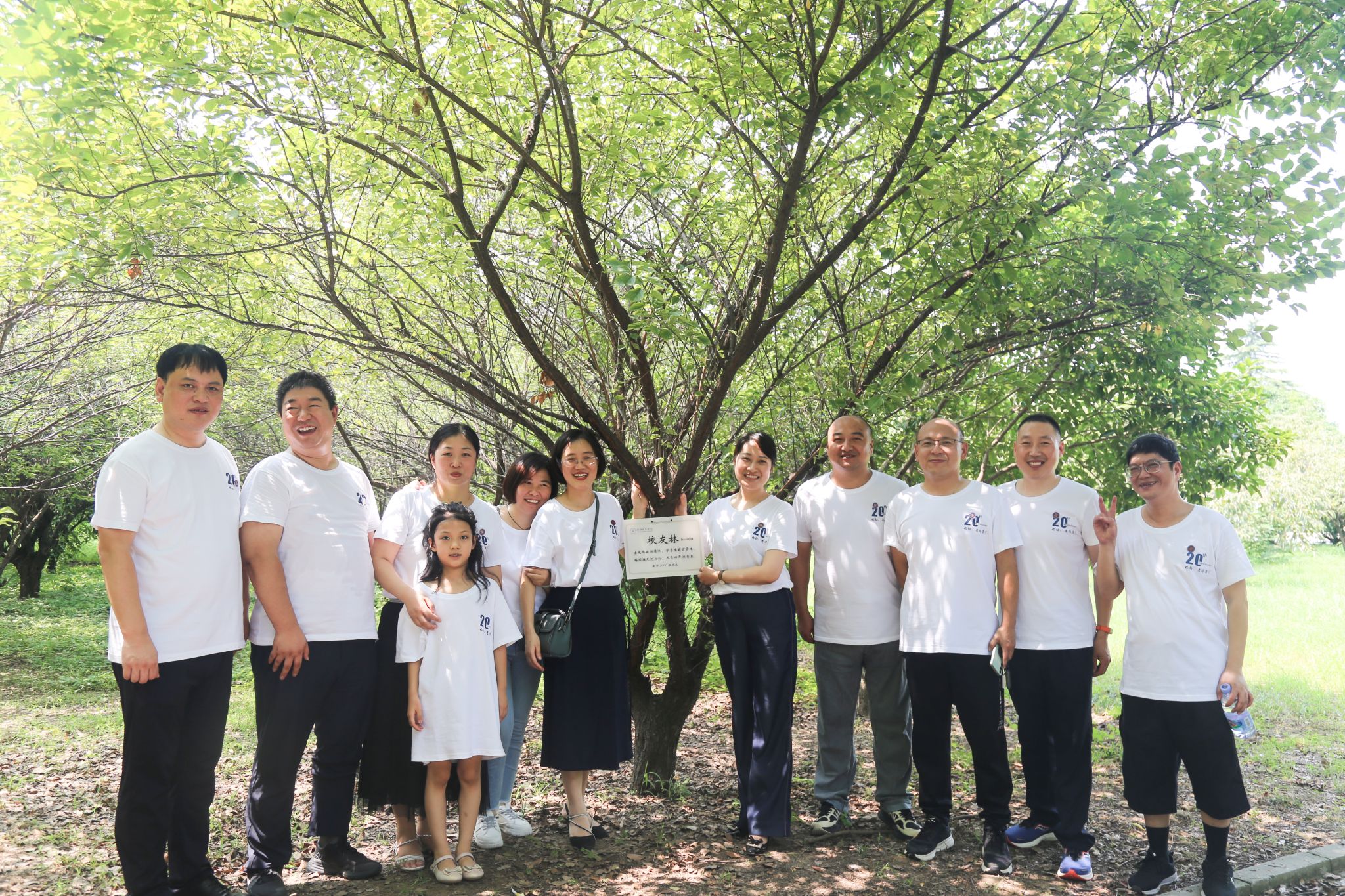 员工们向公司认捐员工林树木,作为毕业20周年对公司的回馈,员工会秘书长王钢代表公司接受捐赠,并为员工代表吴然颁发捐赠证书。